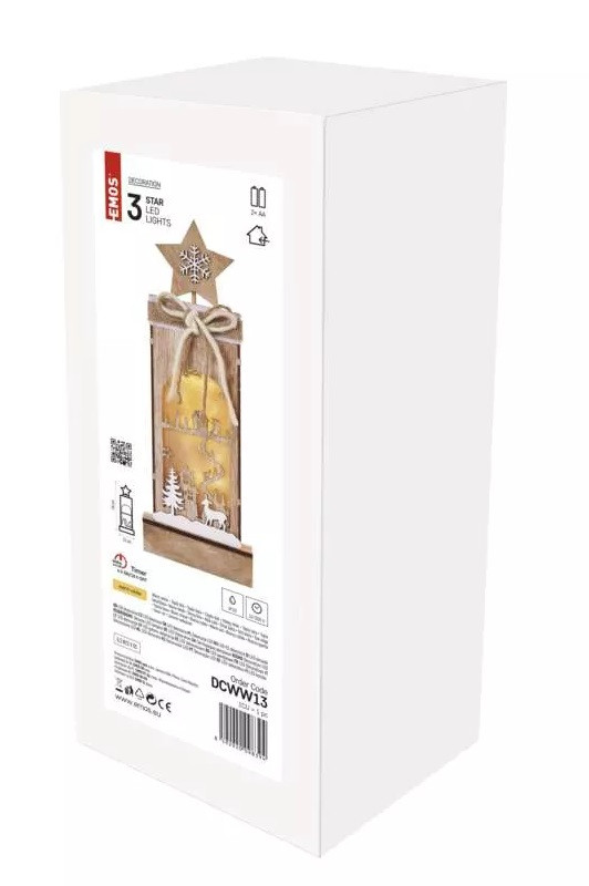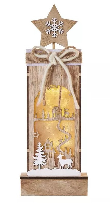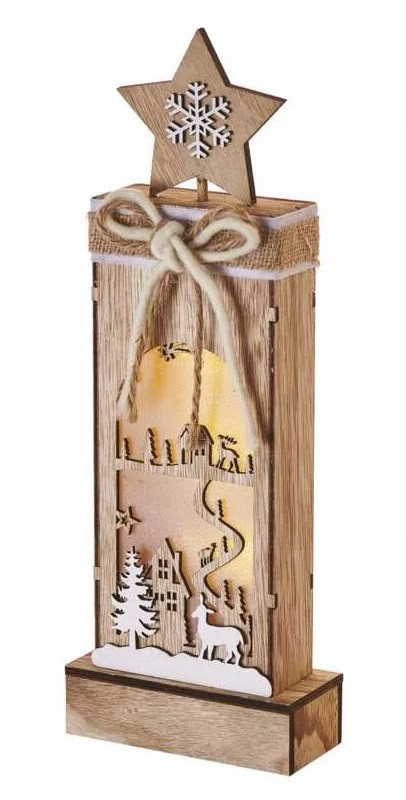 - Dekorácia drevená 5 LED – zimná krajina, 34 cm, 2x AA, vnútorná, teplá biela, časovač (DCWW13)