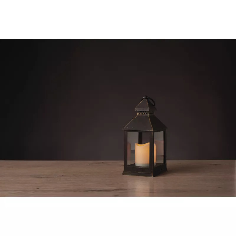 Vianočná LED dekorácia čierny lampáš so sviečkou.