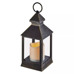 - Dekorácia LED lampáš antik čierny, 3× AAA, blikajúci, čas. (ZY2115)