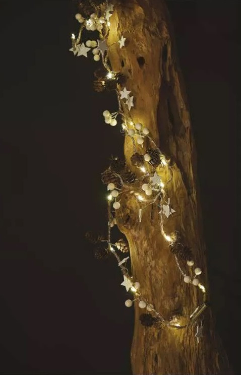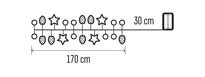 - Girlanda vianočná 20 LED – Šišky, 1.7 m, 2x AA, vnútorná, teplá biela (DCGW04)