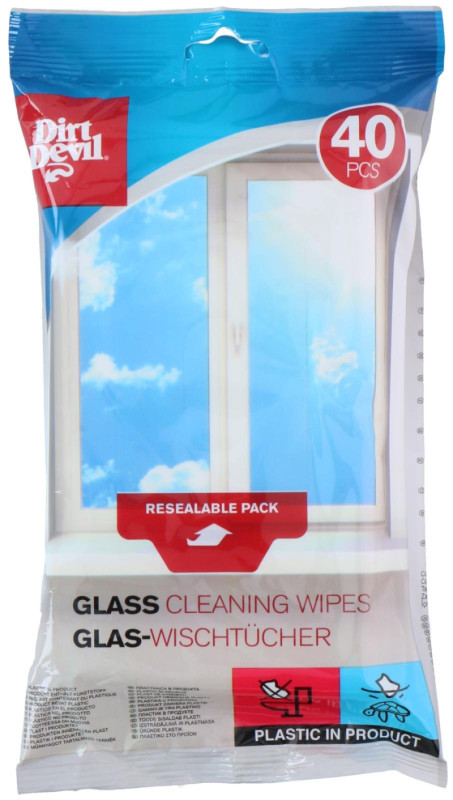 Výkonné čistiace utierky na sklo pre lesk bez šmúh. Ideálne na okná a zrkadlá. Praktické uzatvárateľné vrecko s potlačou.