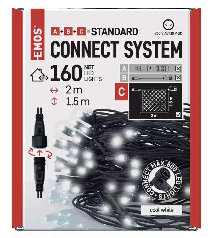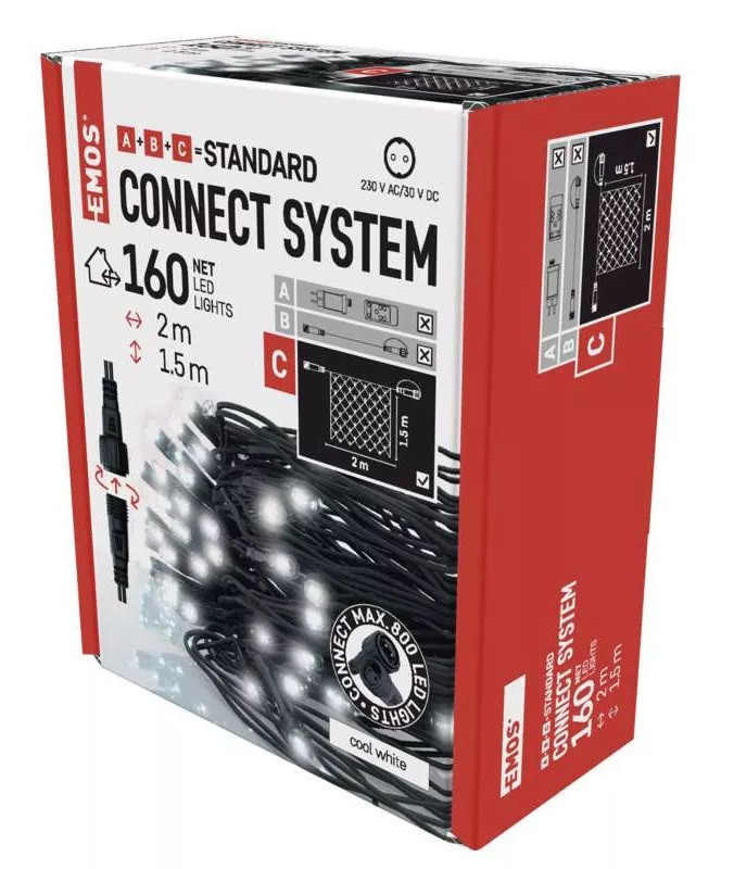 - Reťaz spojovacia 160 LED Standard – sieť, 1.5x2 m, vonkajšia, studená biela (D1DC01)