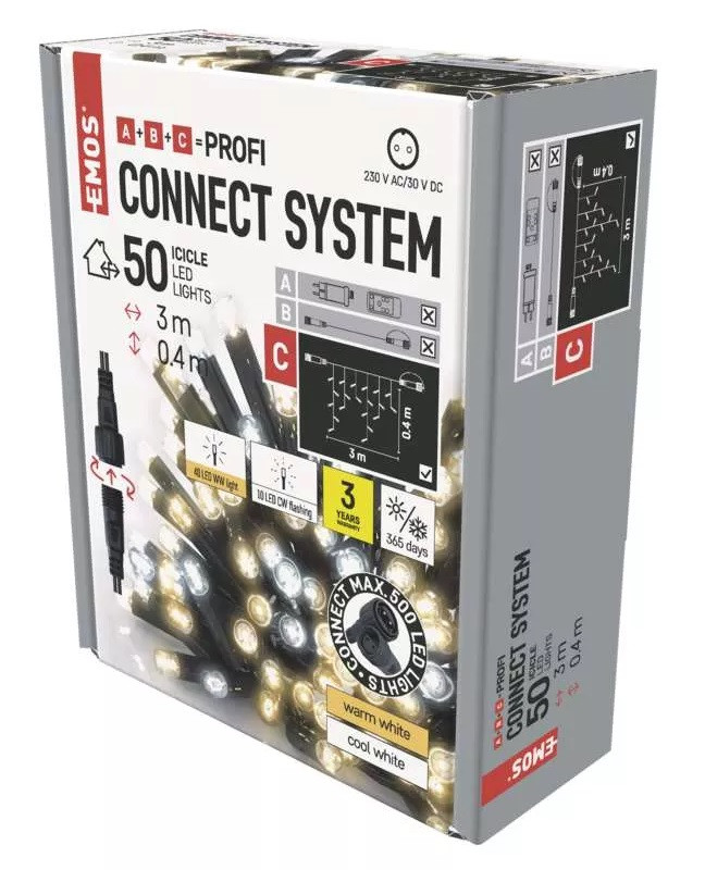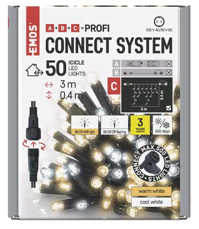 - Reťaz spojovacia preblikávajúca 50 LED Profi – Cencúle, 3 m, vonkajšia, teplá/studená biela (D2CN01)