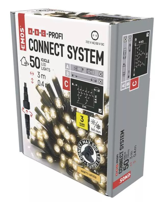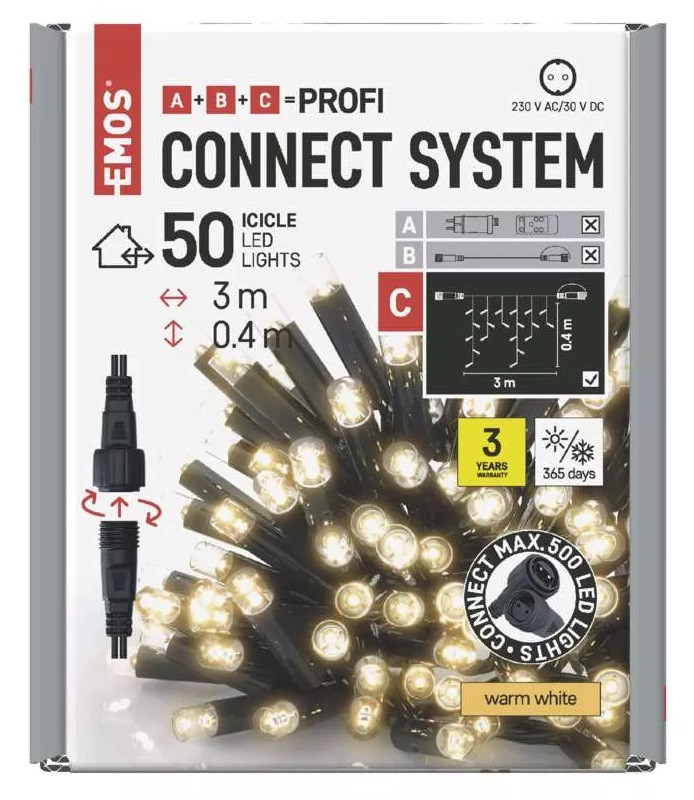 - Reťaz spojovacia Profi 50 LED – cencúle, 3 m, vonkajšia, teplá biela (D2CW01)