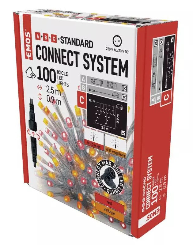- Reťaz spojovacia pulzujúca 100 LED Standard – Cencúle, 2.5 m, vonkajšia, červená/vintage (D1CD01)