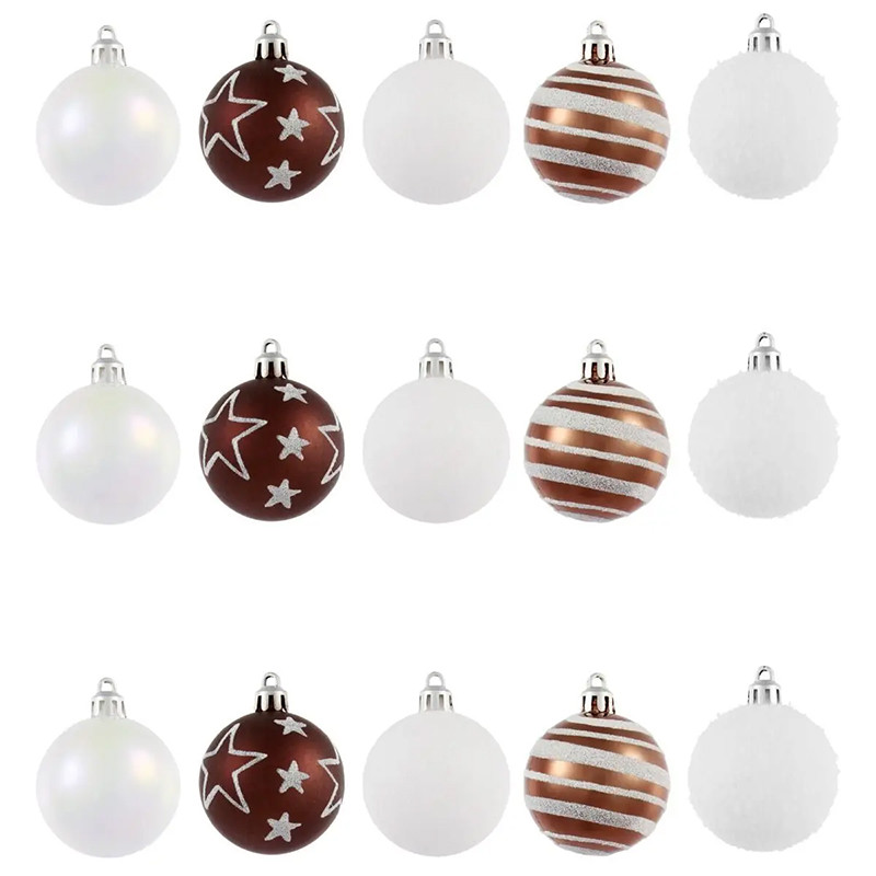 - Sada vianočných gúľ 50 mm biela/bronz 15ks