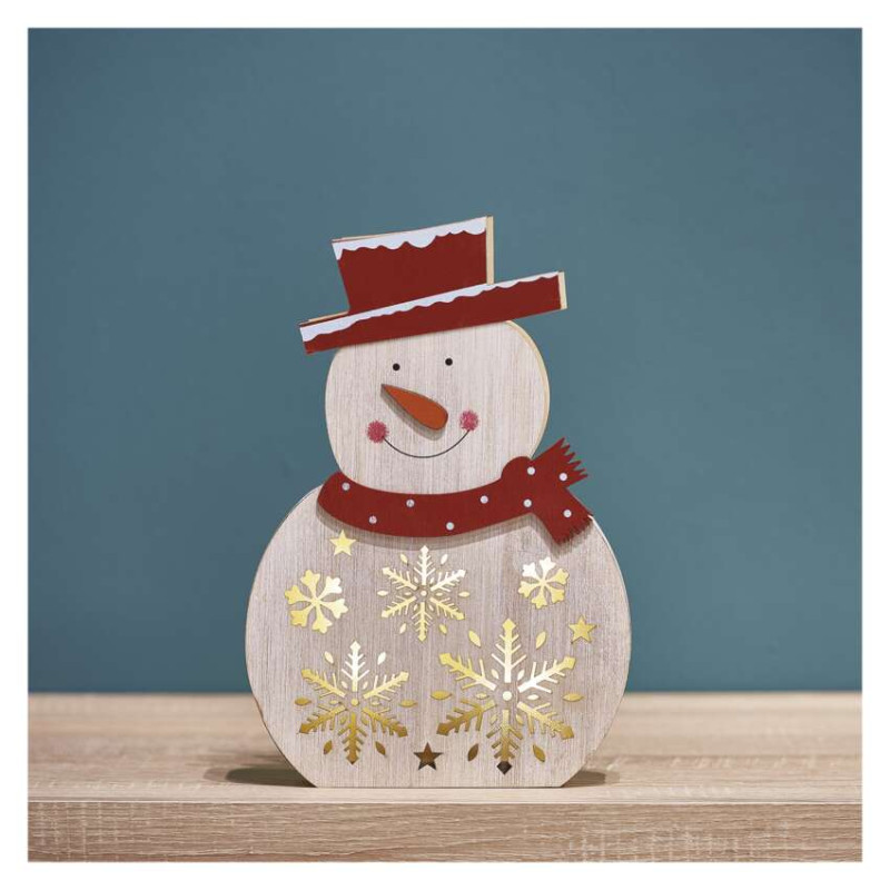 dekorácia snehuliaka je vybavená príjemným teplým bielym osvetlením.