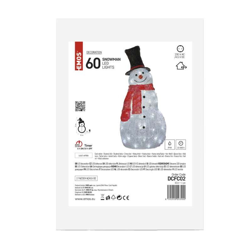 - Snehuliak vianočný LED 61 cm, studená biela, čas. (DCFC02)