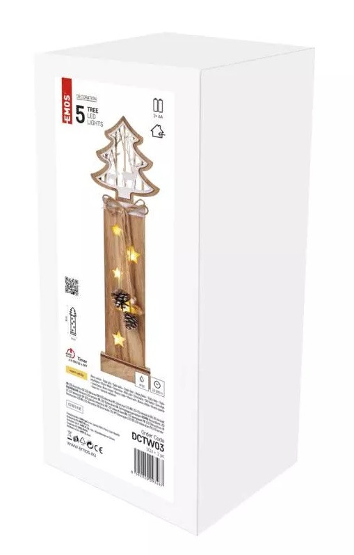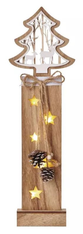 - Stromček drevený 5 LED, 48 cm, 2x AA, vnútorný, teplá biela, časovač (DCTW03)