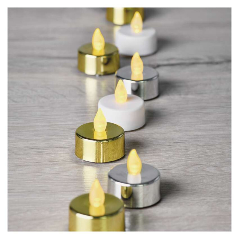 strieborné sviečky, ktoré ako zdroj svetla používajú úsporné LED diódy,