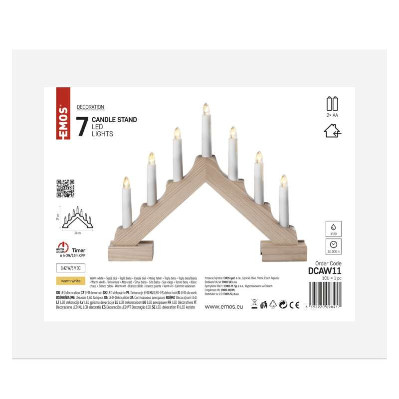 - Svietnik drevený LED 29 cm, 2x AA, vnút., čas. (DCAW11)