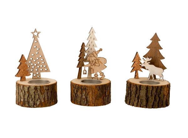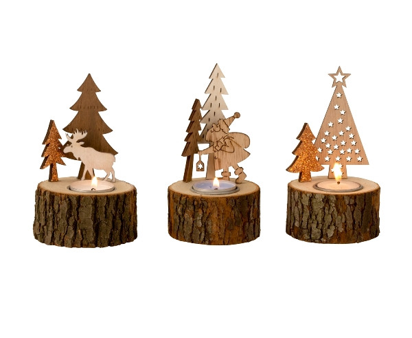 - Svietnik drevený na čajovú sviečku s vianočným motívom (1 kus)