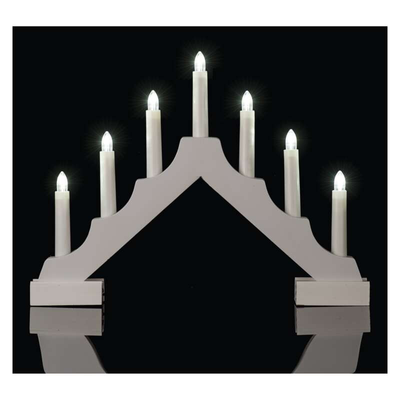 - Svietnik LED drevený biely 29 cm, 2x AA, teplá biela, čas. (DCAW12)