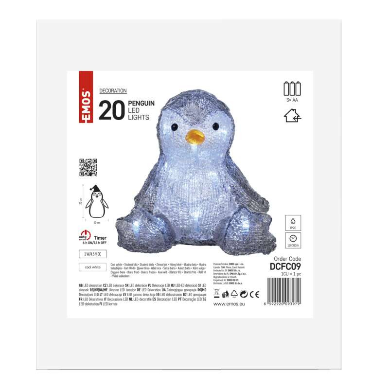 - Tučniak vianočný LED 20 cm, 3x AA, vnút., čas. (DCFC09)