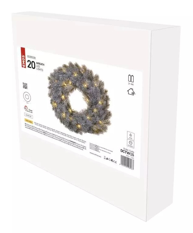 - Veniec adventný 20 LED, 40 cm, 2x AA, vnútorný, teplá biela, časovač (DCTW15)