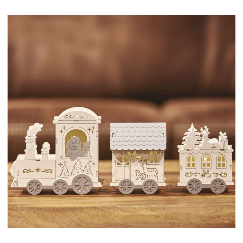 dekorácia "vlak" je vybavená príjemným teplým bielym osvetlením. Vďaka